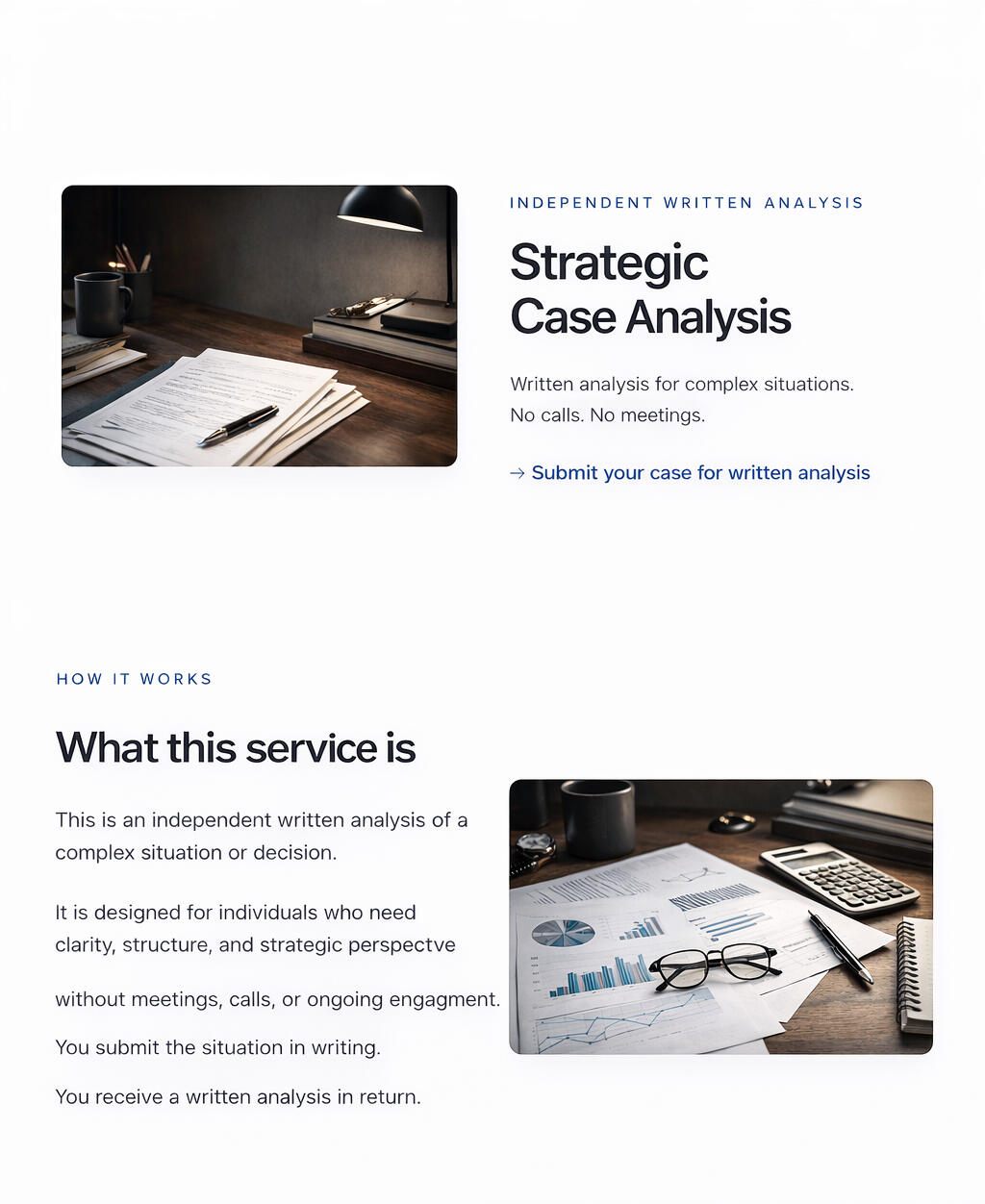 For founders and decision-makers facing complex or high-stakes decisions.1. You submit your situation in writing using a secure form.
